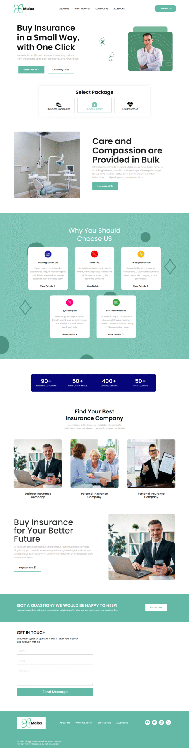 I developed a clean, responsive website for an insurance company focusing on user-friendly navigation and an appealing interface. The site provides detailed information on business, health, and life insurance packages, along with tailored services like pregnancy care and blood tests.